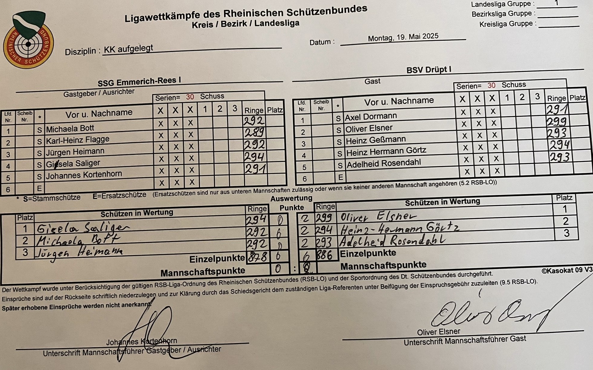 Am 19.05.2025 fand der nächste Auswärtskampf der Saison für die Mannschaft Drüpt I KK statt. Gegen die Mannschaft der SSG Emmerich-Rees wurde der Wettkampf gewonnen. Viel Erfolg für die nächsten Wettkämpfe!