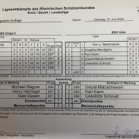 Oben zu sehen sind die Ergebnisse vom Preisschießen 2024, das am 15.06. und 16.06. auf dem Schießstand der St. Heinrich-Bruderschaft Bönning-Rill statt fand.