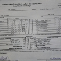 Die Mannschaft BSV Drüpt AI LG Auflage mit den Schützen Oliver Elsner, Adelheid Rosendahl, Axel Dormann, Heinz Geßmann, Heinz-Hermann Görtz und den Ersatzschützen Gabi Giesen, Michael Wegner und Heinz Hellriegel startete am 12.10.2025 in die Rheinlandligawettkämpfe 2025/2026. Es standen direkt unsere beiden Heimkämpfe in Hamminkeln an. Der erste Wettkampf gegen ABSV Essen-Bergeborbeck wurde leider mit 2:3 verloren und auch der zweite Wettkampf gegen die KarlsSGi Aachen wurde leider mit 2:3 verloren. Beide Ergebnisse sind oben durch weiter klicken zusehen. Weiter geht es mit den nächsten beiden Wettkämpfen am 09.11.2025. Viel Erfolg bei den nächsten Wettkämpfen!